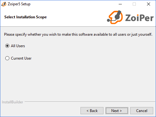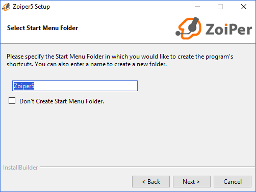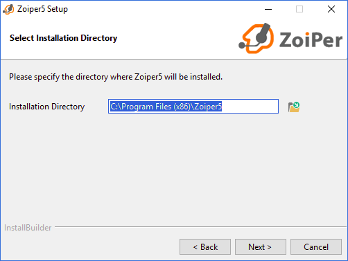 Select an installation folder for Zoiper (it is best to keep the default one).