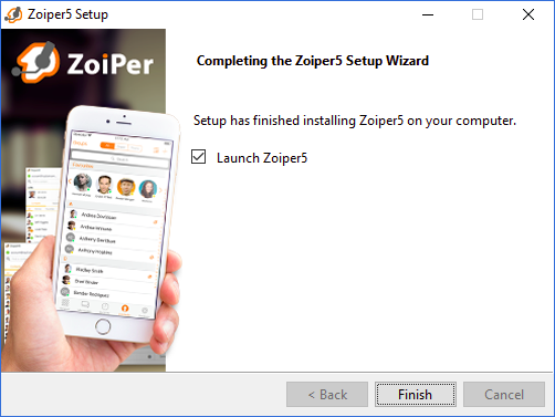 Once you see this screen, the installation is complete. Click “Finish” to launch Zoiper and exist the installer.