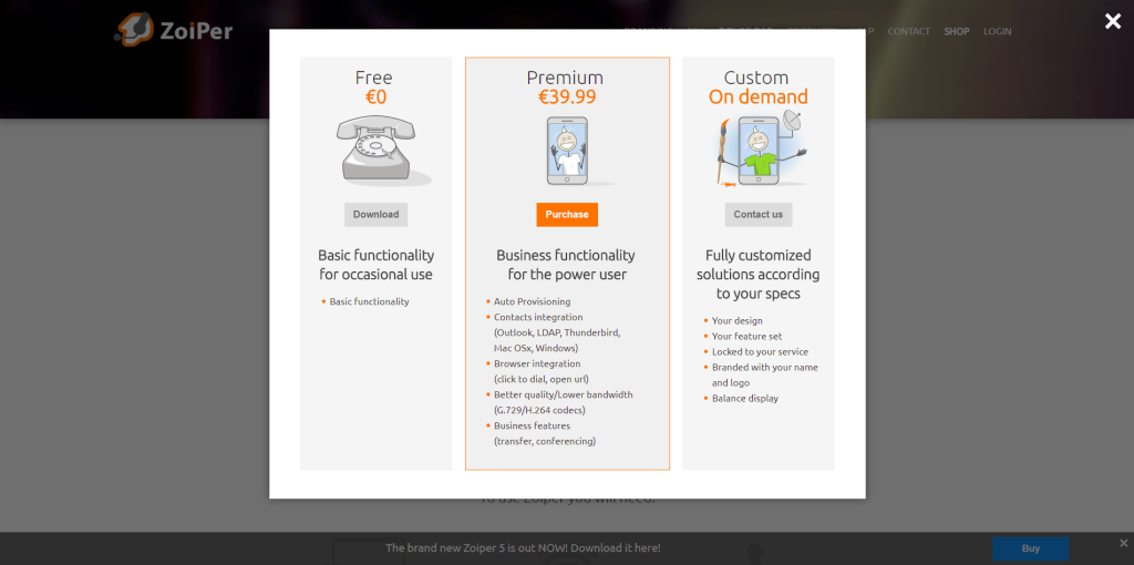 Click the [ Download ] button under the Free version to start downloading Zoiper 5.