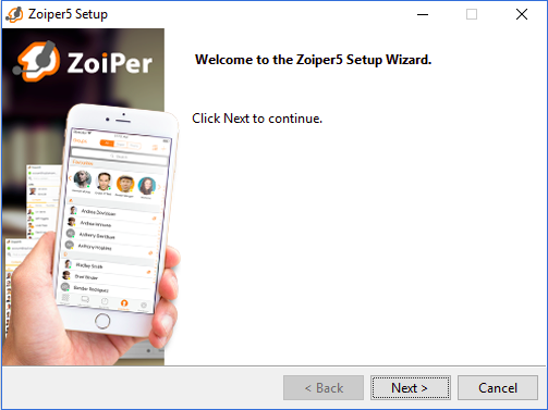 The Zoiper installer will start, click [ Next ] on the first screen of the Setup wizard.