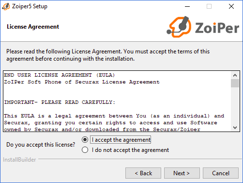 The Setup is now ready to begin the installation. Click “Next” to continue and install Zoiper on your computer.